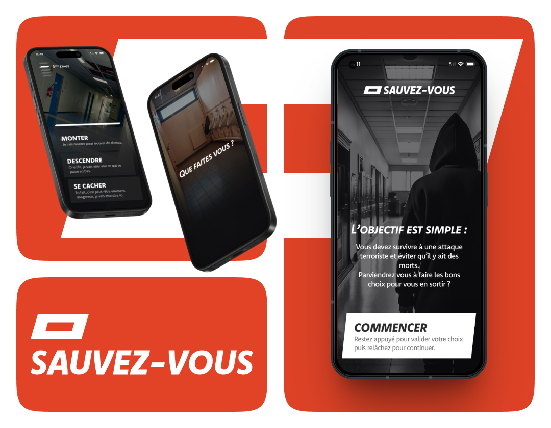 Dans le cadre de mon cours de méthodologie de conduite de projet / UX Design, j’ai travaillé en équipe de trois sur Sauvez-vous, une fiction interactive dont l’objectif principal était d’expérimenter une démarche UX complète, basée sur le prototypage et l’amélioration continue par tests utilisateurs.