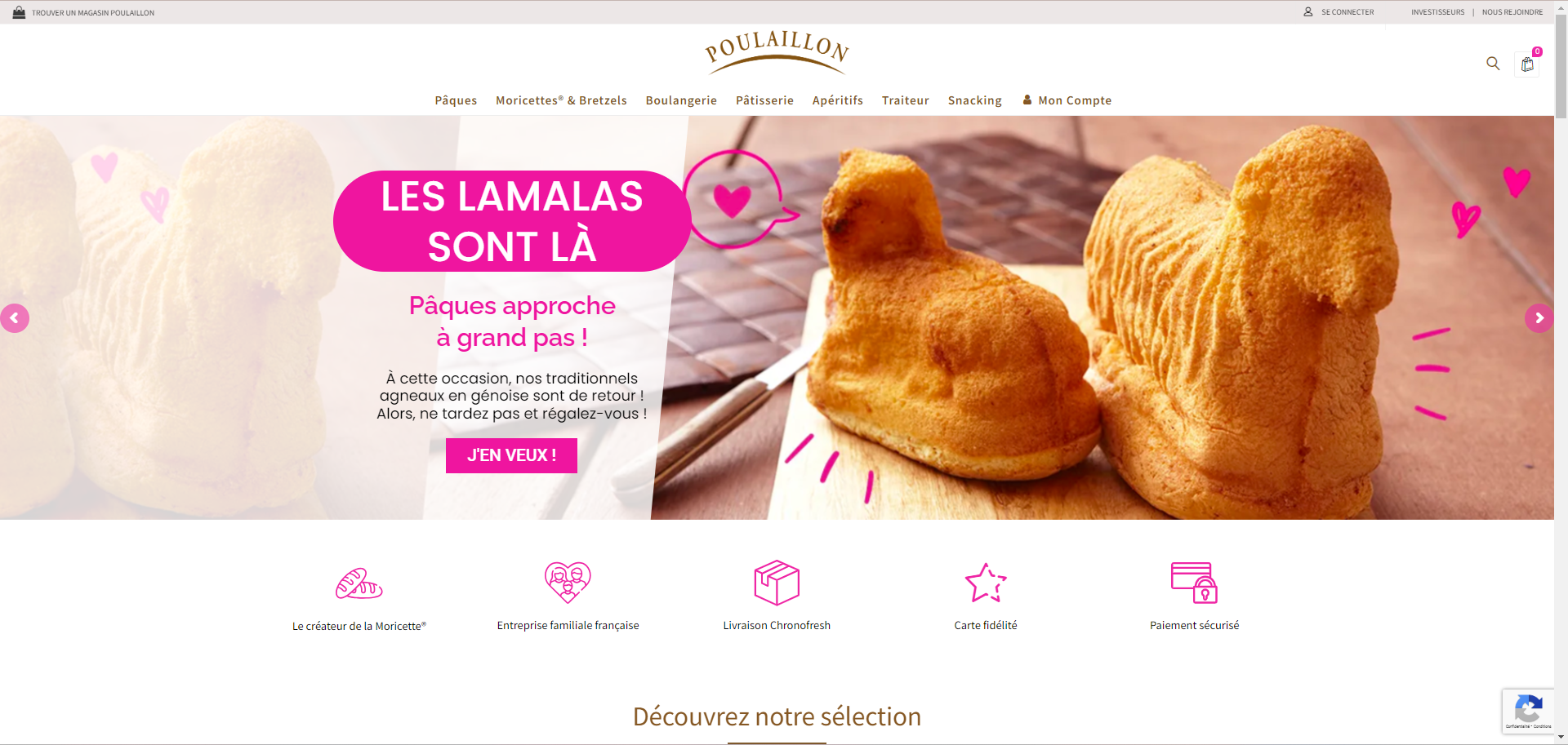 Durant mon expérience en alternance au sein de l’équipe de chez Poulaillon, j’ai eu l’opportunité de prendre en charge la gestion du site internet ainsi que le développement d’actions de webmarketing. Mes responsabilités comprenaient la création de fiches produit optimisées pour le référencement, la gestion du webdesign de la page d’accueil pour promouvoir les produits phares, et la création d’e-mails pour la newsletter afin d’attirer les abonnés sur les nouveaux produits.