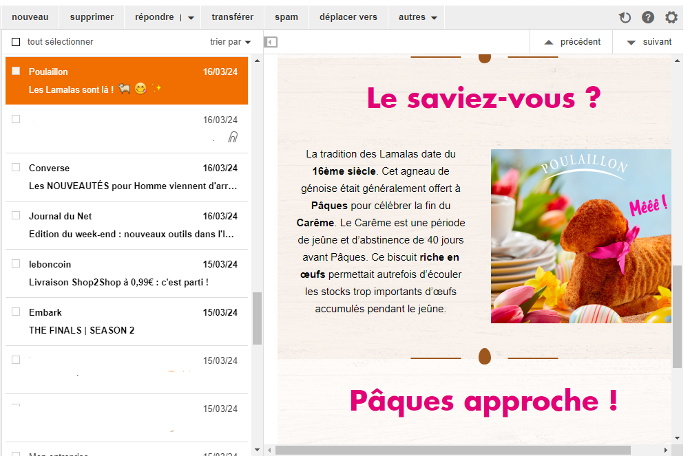 Poulaillon est une entreprise renommée dans le domaine de la boulangerie-pâtisserie, proposant une large gamme de produits de qualité. Mon rôle au sein de l’équipe était de contribuer à la visibilité et à la promotion de ces produits sur leur site internet et à travers des campagnes de marketing par e-mail. Les trois principales missions qui m’ont été confiées étaient cruciales pour augmenter la notoriété de la marque, améliorer le référencement du site et stimuler les ventes en ligne.